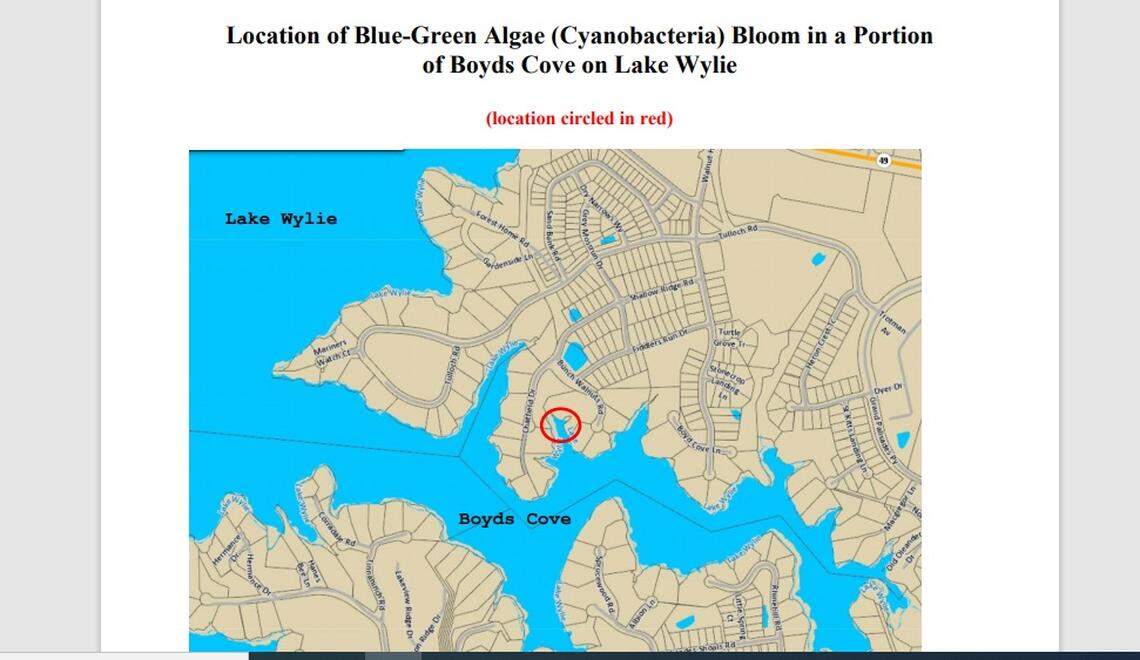 After the resident called to report discolored water in Boyds Cove, staff with Charlotte-Mecklenburg Storm Water Services found active blue-green algae in part of the cove, the department posted on CharMeck.gov.