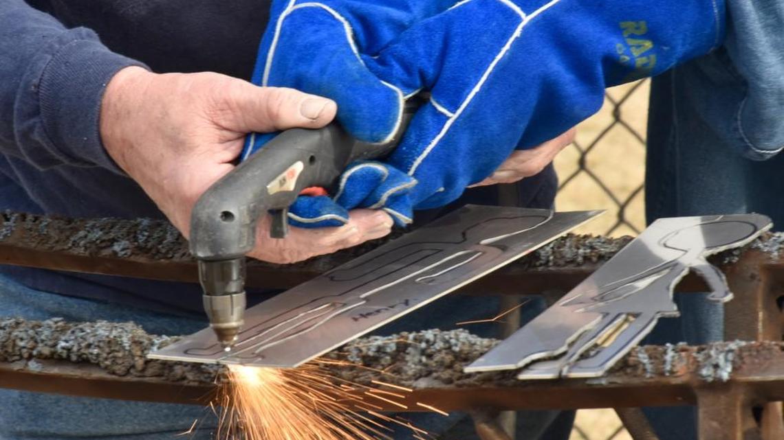 Approximately 150 fifth graders each drew a self portrait on steel. Doster helped them use a plasma cutter to finish the pieces. He will assemble the individual portraits into the final piece, which will be displayed in front of the school. The sculpture is designed to be cumulative, with the option for future students to add onto it in coming years.