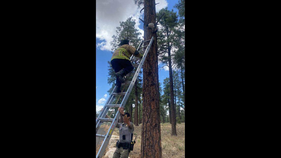 “A huge shoutout to our firefighters and first responders who sprang into action today to rescue a furry adventurer from the heights of a tree at Grand Canyon,” the post read.