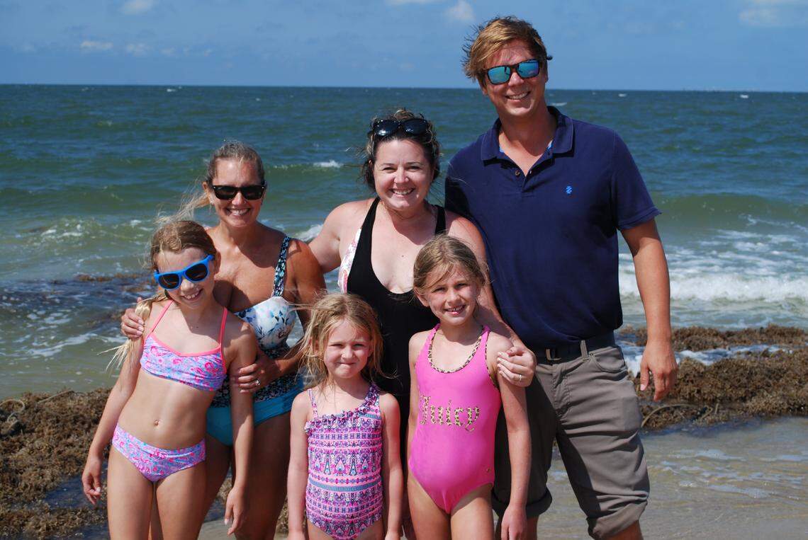 The Brandis family and Scharver sisters, plus baby sitter Megan Flynn found the net washed up on the beach covered in seaweed, barnacles and oysters.