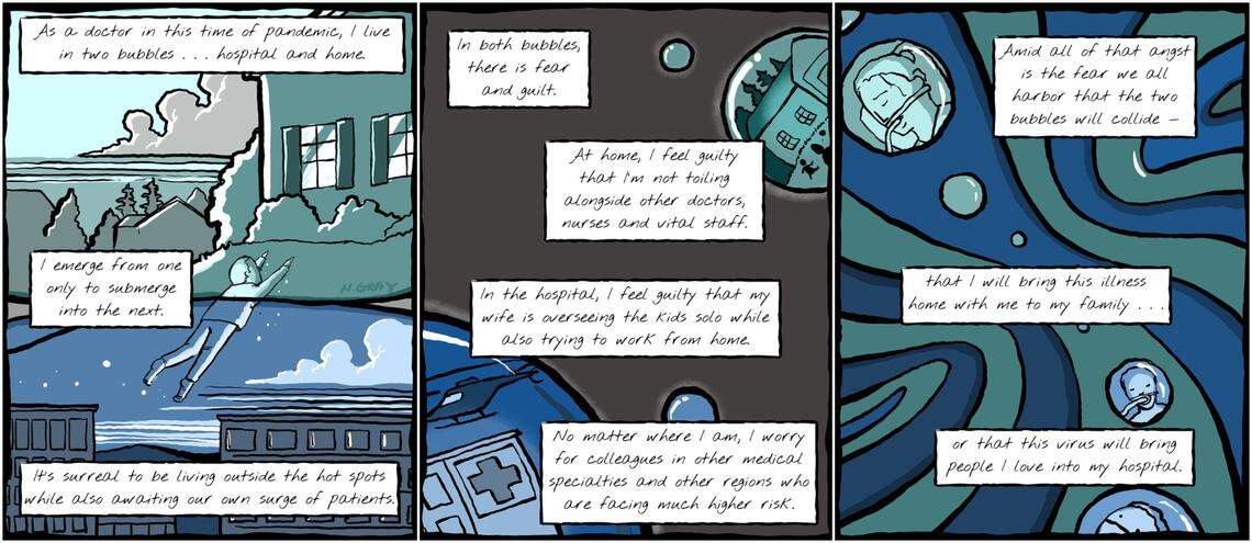 Gray, who has no formal art training, has published several comics in the past three or so years on a wide range of complicated subjects: palliative care in the time of pandemic; the crippling cost of cancer care in America; the ethics of resuscitation medicine.