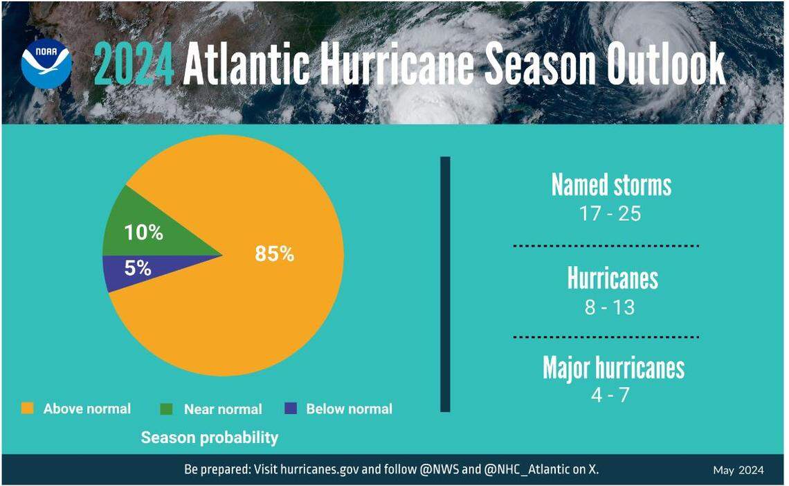 This story was originally published May 24, 2024 at 9:56 AM with the headline "We’ll get a busy hurricane season, NOAA agrees. Here’s what NC & the East Coast might see."